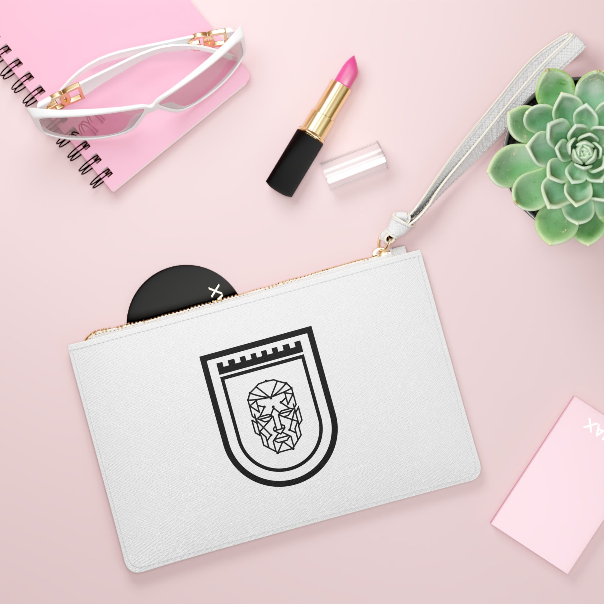 Designed with a loop handle to quickly free your hands, this custom clutch bag is made for the fashionista on the go. It can hold everyday essentials such as a phone, wallet, and keys. It features a zip fastening and a fully lined internal pocket. It is made of vegan leather in the Saffiano pattern finish that was invented by Prada.